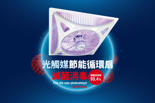 本公司生產光觸媒節能風扇,可有效去除細菌(達93.4%),且有效抑制病毒的傳播和分解,使其不活化將感染性降低,有效抑制新冠狀病毒傳播。
